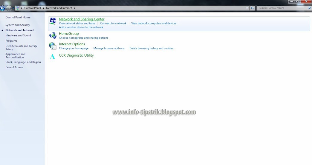 1. Di Control Panel maka klik Network and Internet.